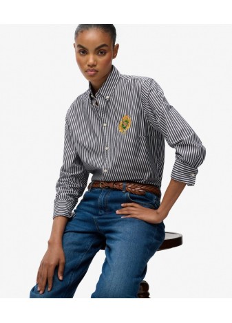 Camisa Superdry Slim Escudo Dorado Rayas Azul Marino y Blanco